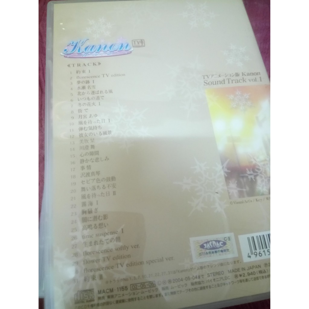 日版cd Tvアニメーション版kanon カノン サウンドトラックvol 1 初回限定盤 Ost 原聲帶專輯 蝦皮購物